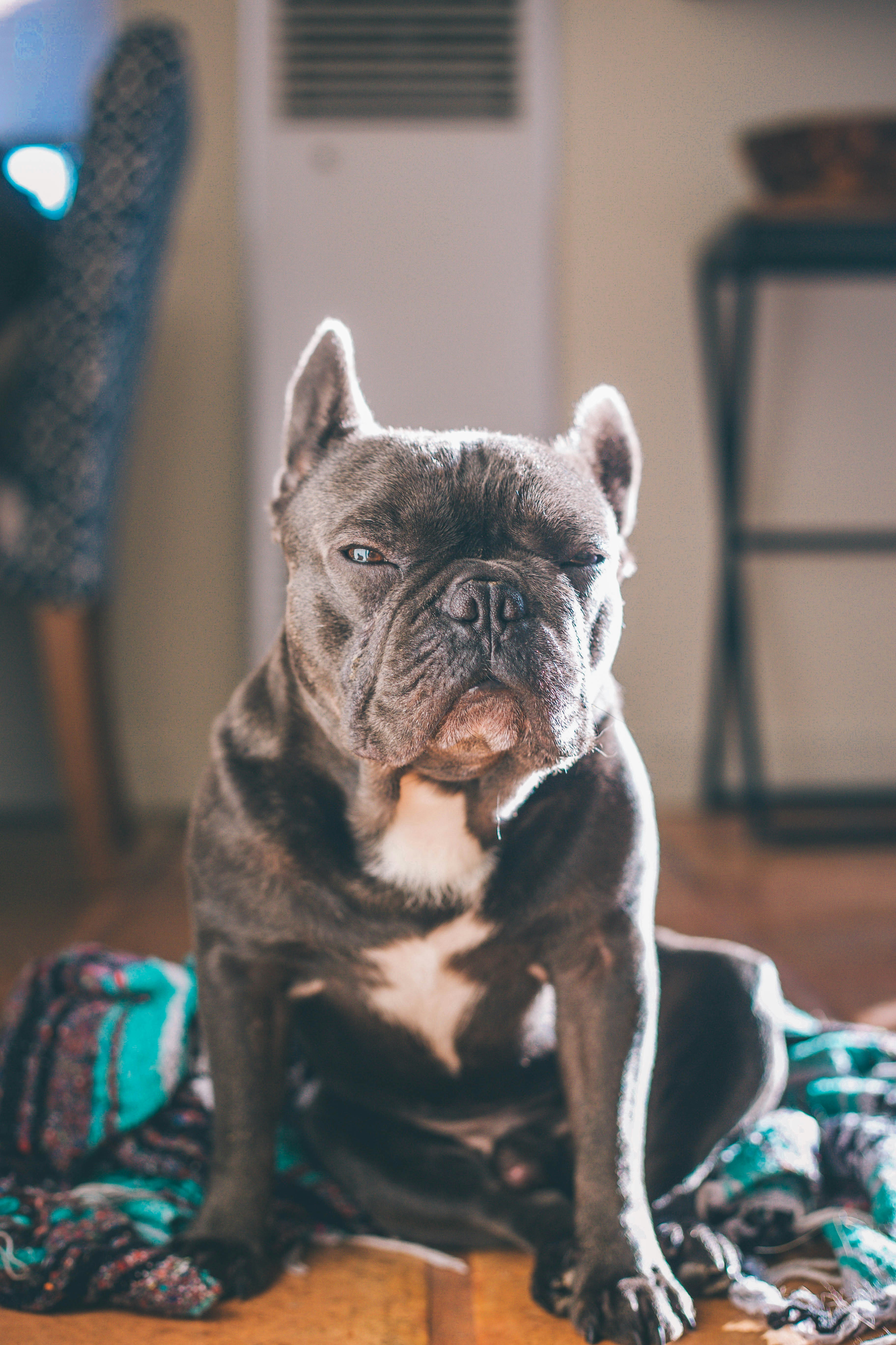 black dog sitting on floor