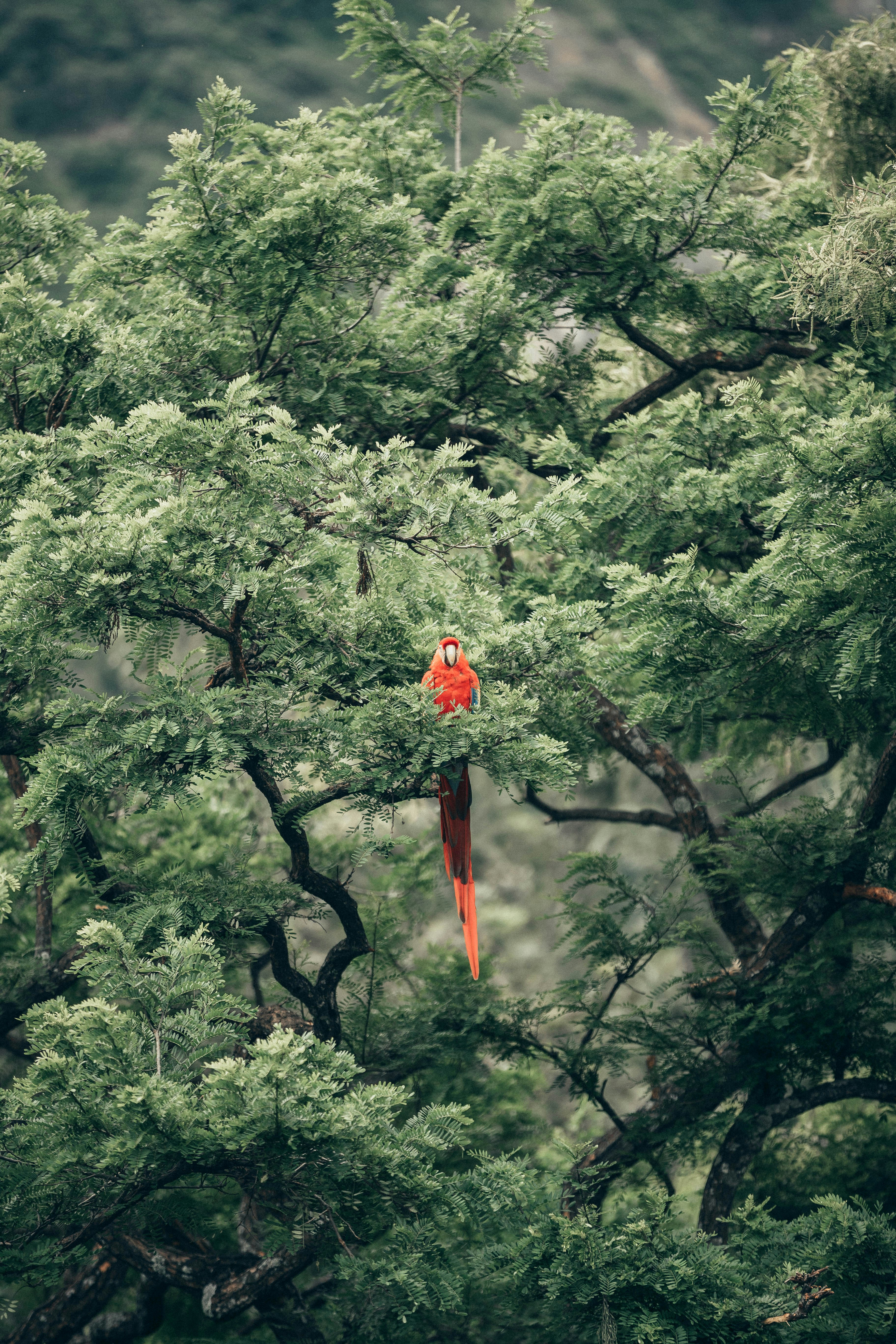 red bird on tree